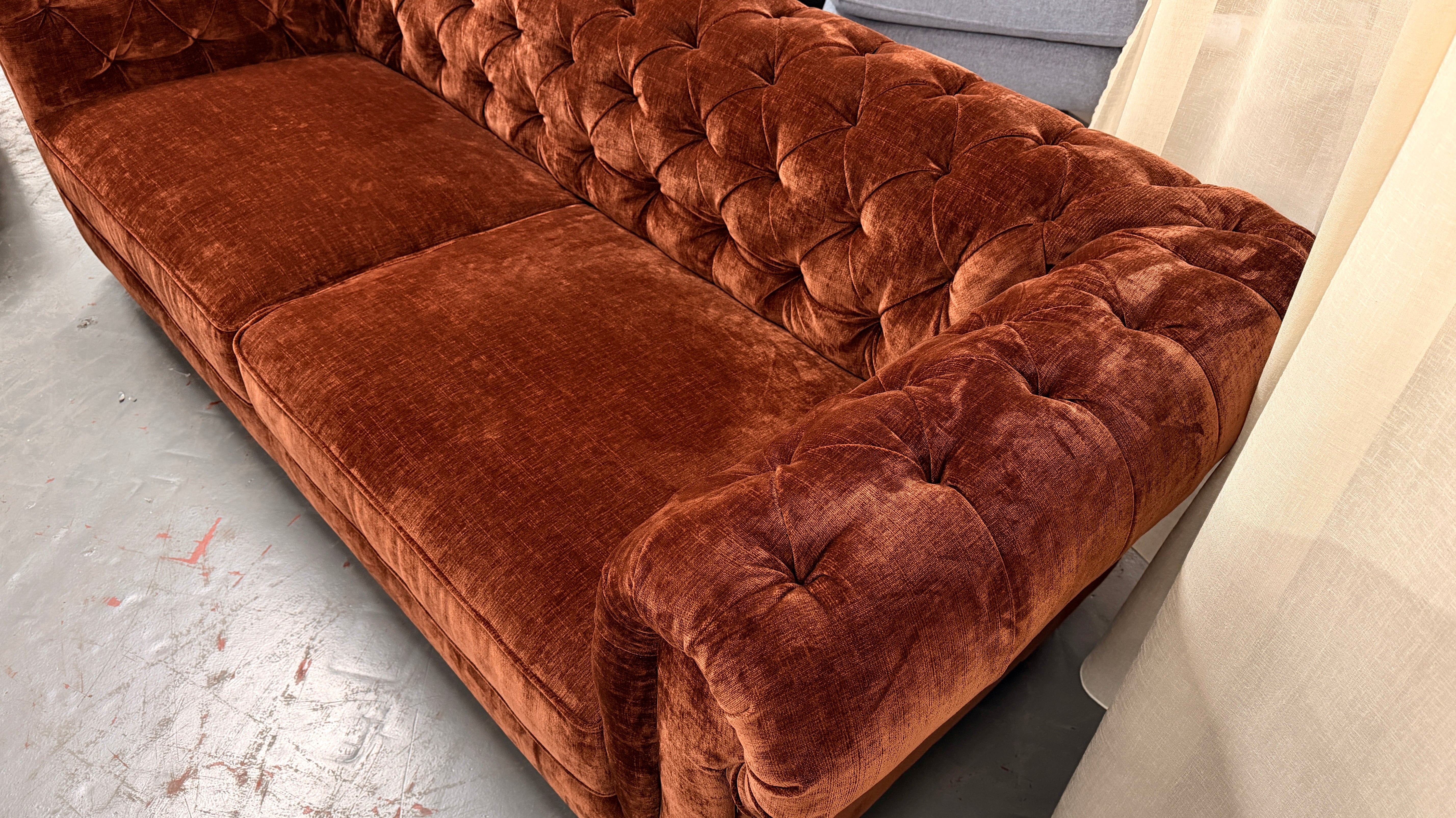 3 Seater & Arm Chair Chesterfield Fabric Sofa Set - Clearance Ex Display