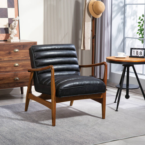 Club Armchair CLASSIC BLACK LEATHER EFFECT WITH CUSHIONED COMFORT Enhance your interior with the timeless elegance of the Club Black Leather Effect Armchair.
