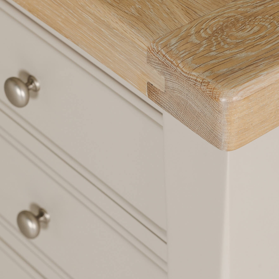 Built with a reassuring sense of solidity, Henley feels stable and dependable in daily use. The painted taupe finish is easy to maintain and forgiving of everyday marks, making it a sensible choice for a piece you’ll use every day.