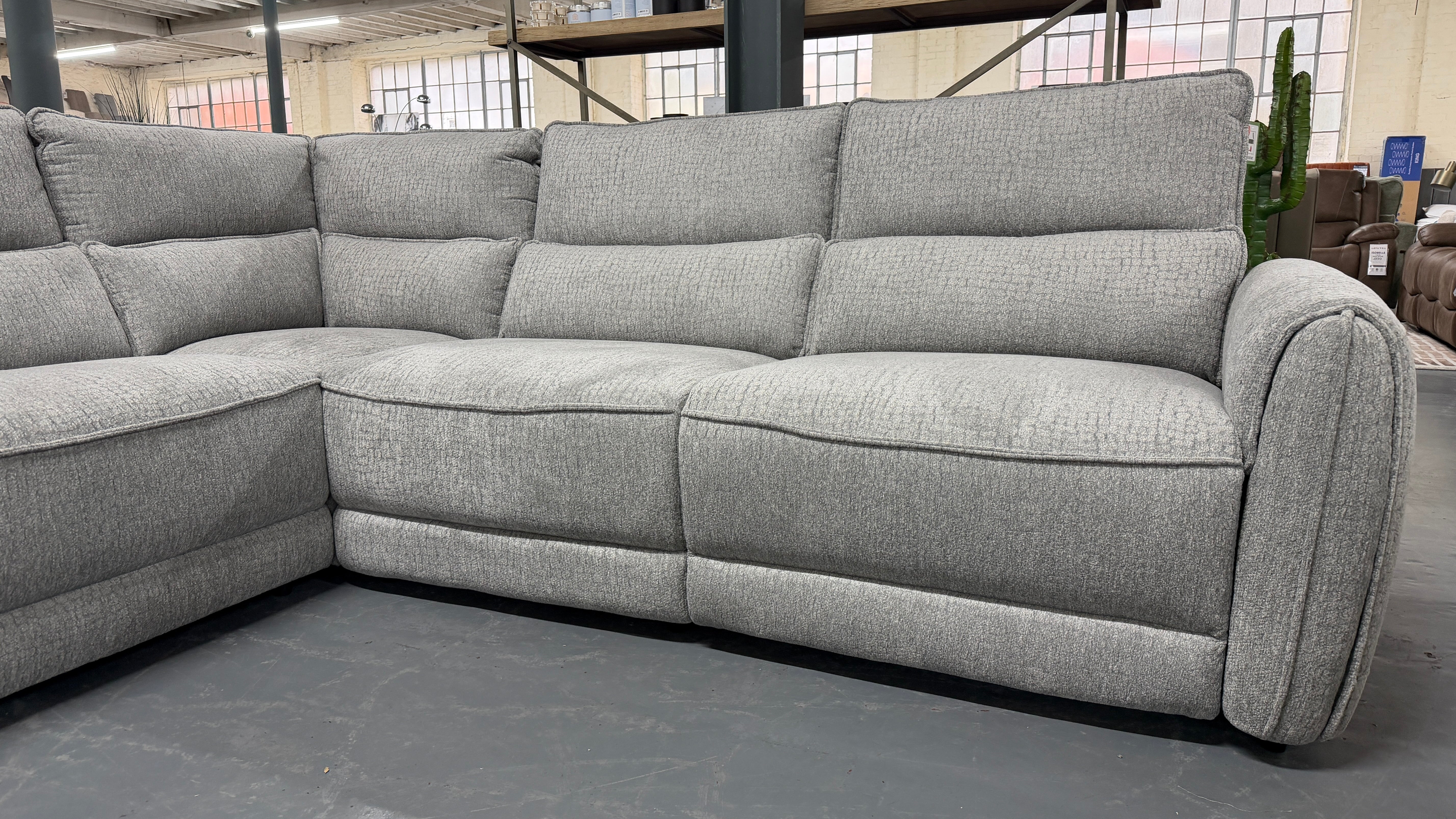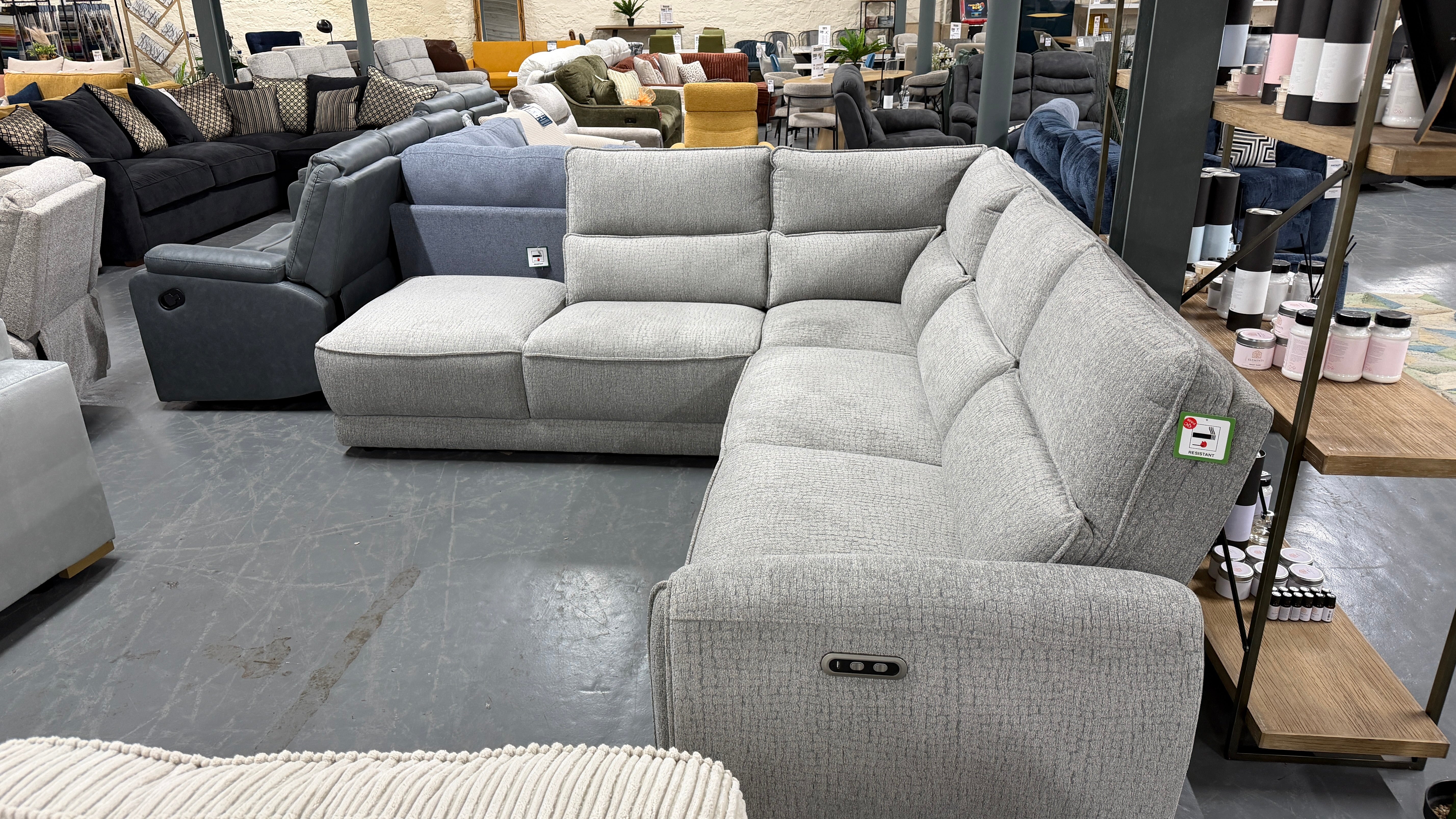 Contemporary and youthful design seamlessly blends style and comfort. Padded seats featuring pocket springs topped with foam and Dacron fibre wrap offer superb support and luxurious comfort. Relax back into the chaise or utilise the power activated recliner for maximum relaxation. Upholstered in a thick, soft and tactile fabric perfect for cosying up.